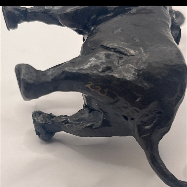 A fantastic decorative piece with real presence despite its compact size — perfect for display in a home, office, or collection of animal bronzes.
